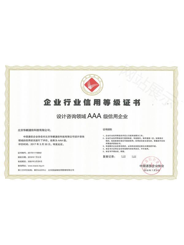 企業(yè)行業(yè)信用等級證書