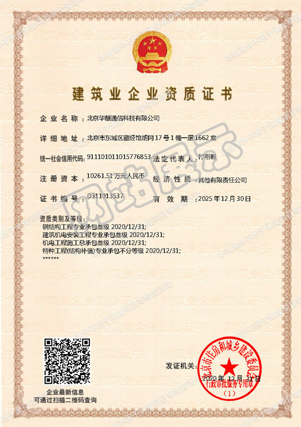 通信工程施工總承包貳級資質證書