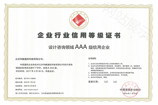 企業(yè)行業(yè)信用等級證書