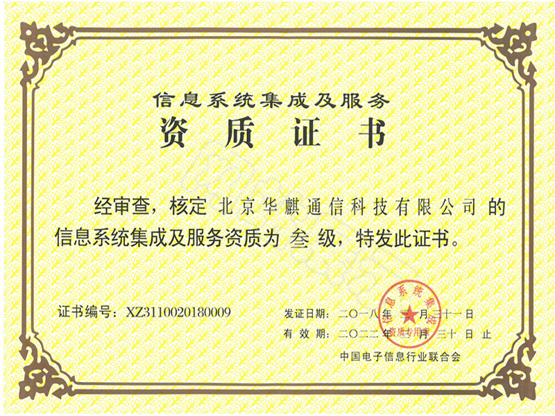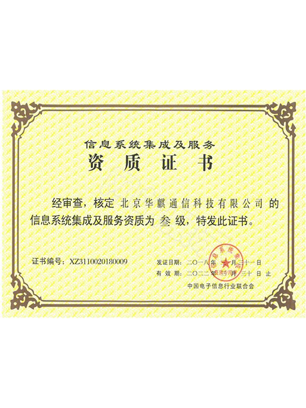 信息系統(tǒng)集成及服務資質證書