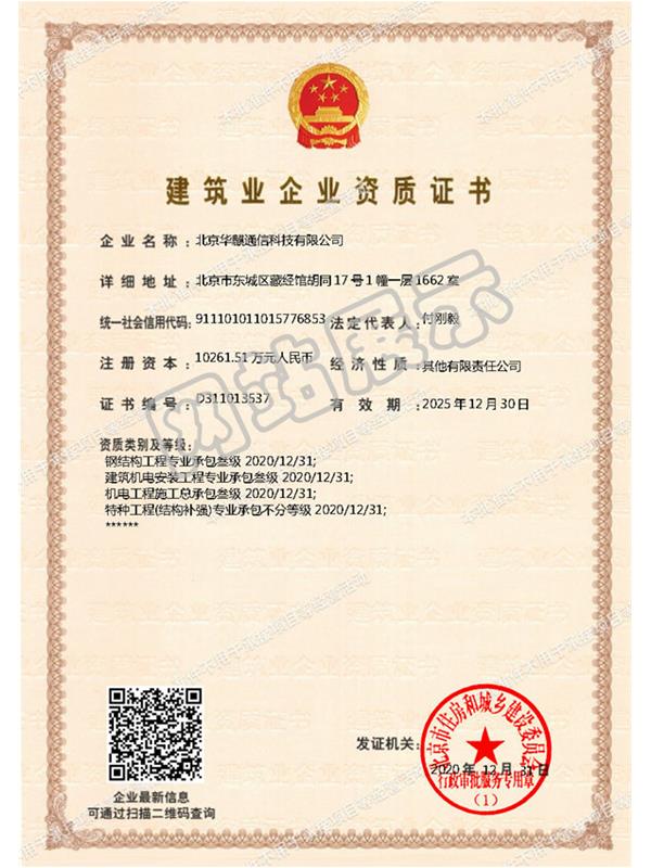 通信工程施工總承包貳級資質證書