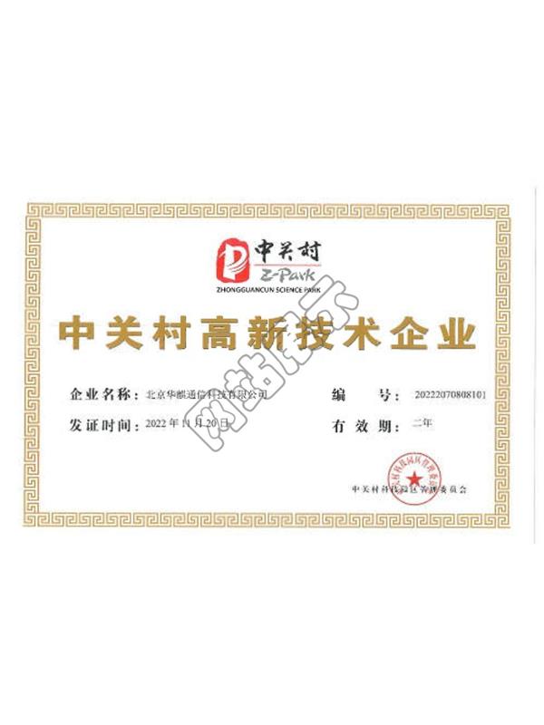 中關村高新企業(yè)證書